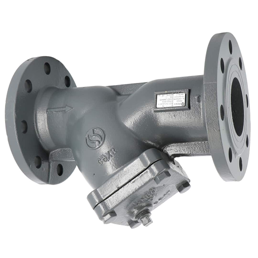 Filtre à tamis à bride longueur face-à-face courte (norme DIN 3202 F1). Forme en Y, corps fonte.