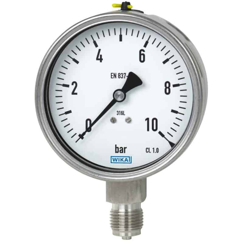 Manomètre tout inox pour la mesure de pression vapeur, eau surchauffée et fluides agressifs, avec haute résistance à la corrosion et à la température.